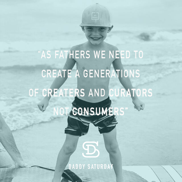 The statement encourages fathers to be proactive and involved in their children's lives, using their talents to guide them. It suggests that if fathers do not take this role, someone or something else will fill the void, implying the importance of a father's influence in a child's development. The image features a positive message about the role of fathers in nurturing creativity and curation rather than consumption in their children. The tone is motivational and supportive of active parenting.
