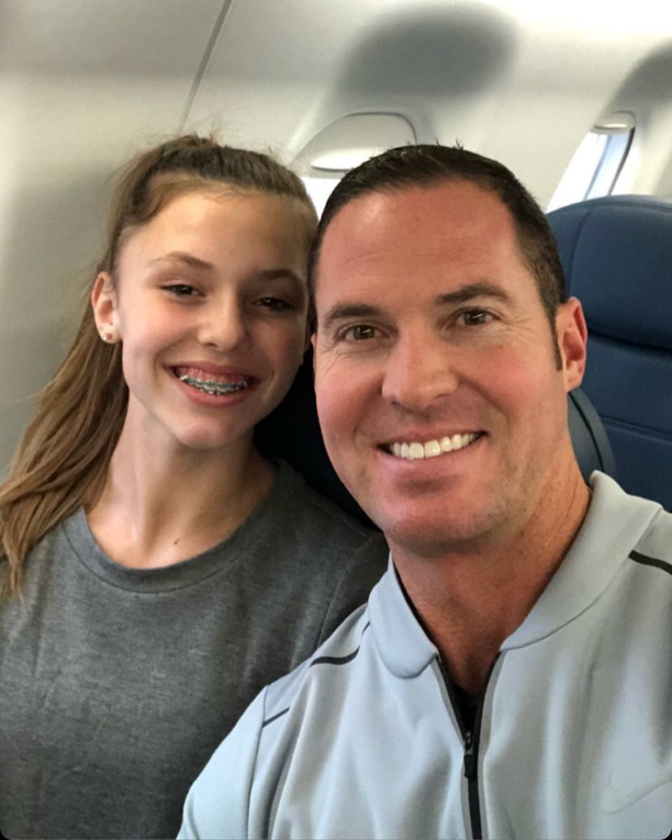 The statement is celebratory and shares a personal tradition of a father and daughter taking trips together at different ages. It is positive in tone and intent, highlighting a family practice meant to create memories and bonding experiences. The hashtags suggest a sense of pride and joy in these travels. The image shows two individuals, presumably the father and daughter, smiling and seemingly happy, which supports the positive nature of the statement.