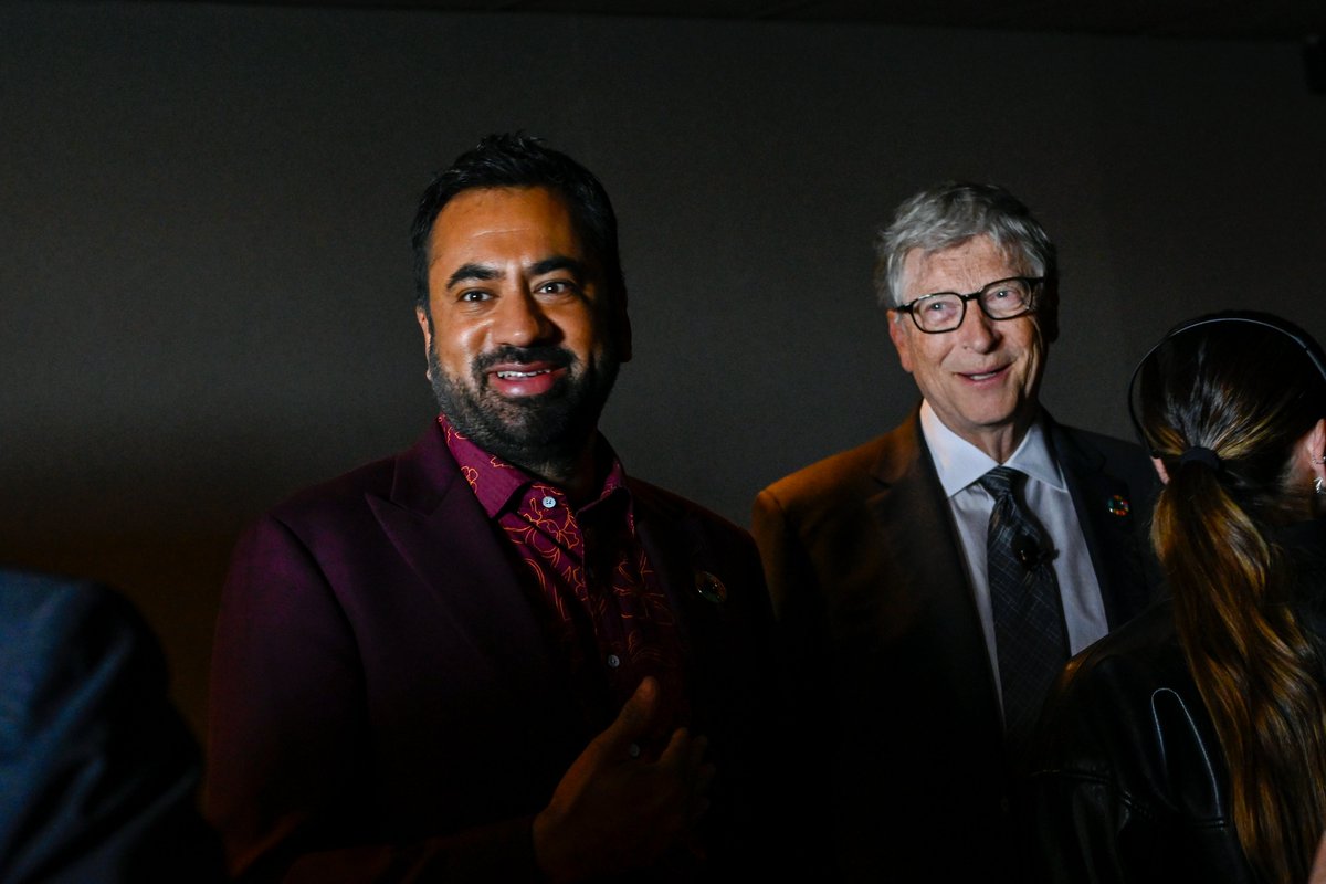 The statement '#Goalkeepers2030 was filled with laughter, impactful storytelling, and innovative ideas that left me feeling inspired.' is positive and reflects a personal experience of inspiration and enjoyment. The images accompanying the statement show people interacting in a friendly manner, which supports the sentiment expressed in the statement. The statement and images together promote a positive message about the event and do not contain any harmful or disrespectful content.