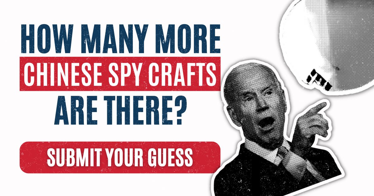The statement expresses concern over national security by referencing unauthorized objects in U.S. airspace, labeling them as 'brazen incursions of American sovereignty' and deeming them 'unacceptable.' The accompanying image appears to be a graphic with a sensational tone, asking viewers to guess the number of 'Chinese spy crafts,' which could be seen as promoting a speculative and potentially inflammatory narrative. The image includes a stylized depiction of a person pointing towards a balloon-like object, which is presumably meant to represent a 'spy craft.'