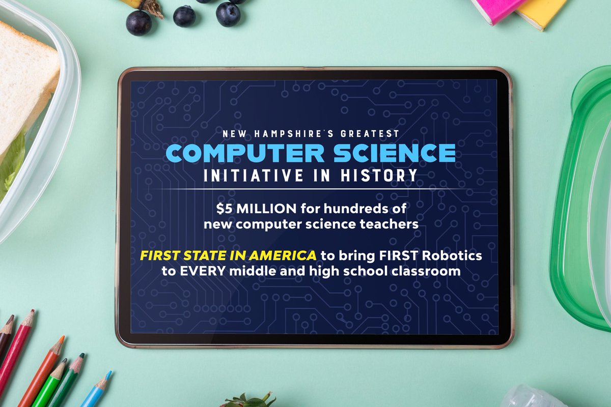 The statement expresses support and pride for Governor Chris Sununu's leadership in computer science education. It acknowledges the efforts being made to improve education and workforce skills for students, and it highlights a commitment to technological advancement. The tone is positive and supportive, and the content is focused on educational initiatives. The image shows an informational graphic about New Hampshire's computer science initiative, which complements the statement by providing context about the specific educational efforts being praised.
