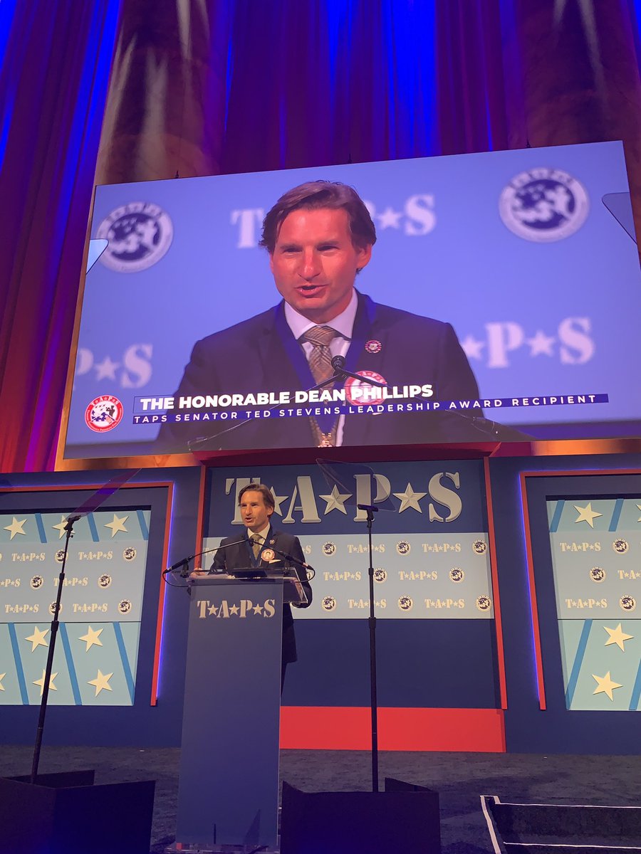 On 3/22 , @RepDeanPhillips was presented with the Sen. Ted Stevens Leadership Award from TAPS. A #GoldStar son whose father, @USArmy Capt. Arthur Thomas "Artie" Pfefer, died in Vietnam, he received the award for outstanding leadership on Capitol Hill on behalf of other survivors.