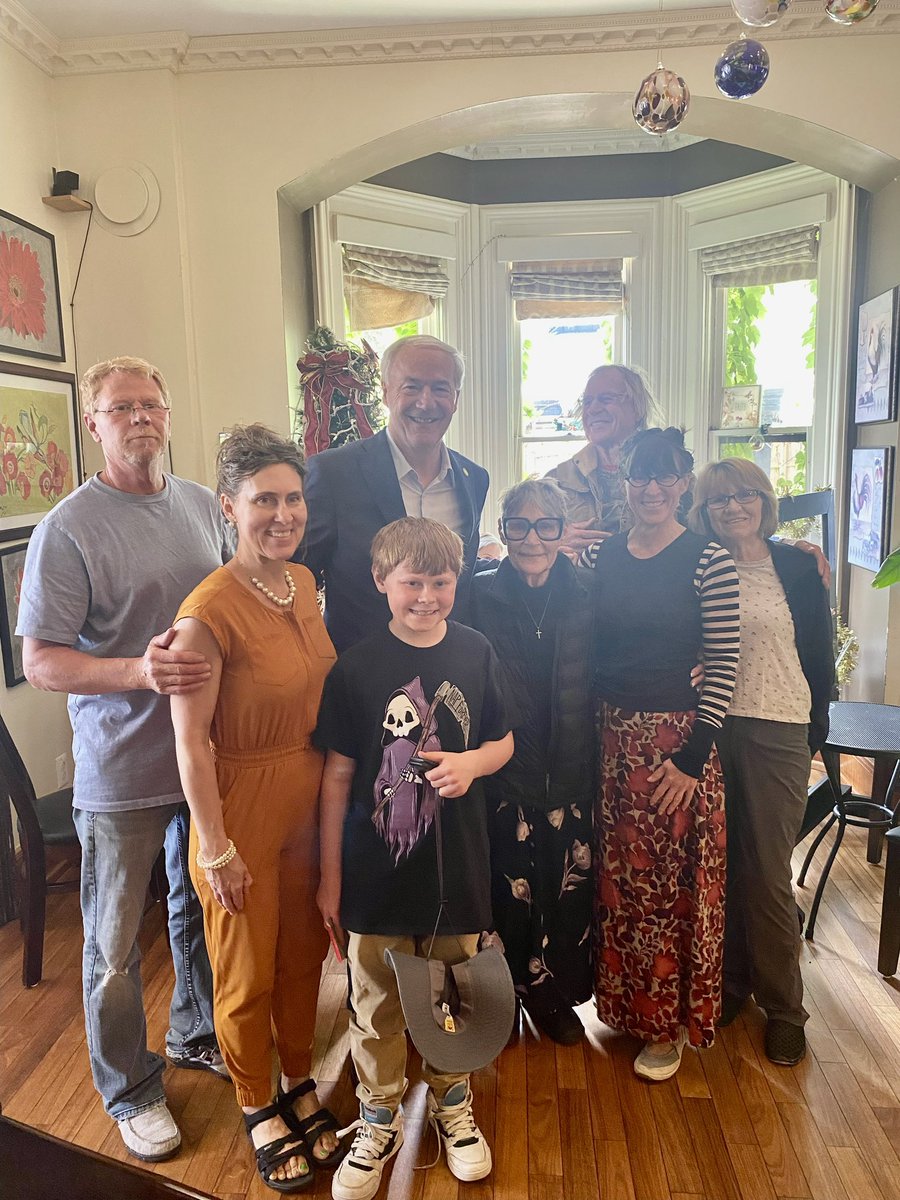 The statement is positive and appreciative, expressing gratitude to the Walter family for their hospitality. It also touches on the speaker's political agenda, mentioning the challenges faced by small businesses and proposing to work on workforce growth and price reduction to improve the economy. The accompanying image shows a group of people, presumably the Walter family, with the speaker, which adds a personal touch to the message and illustrates the community engagement aspect of the statement.