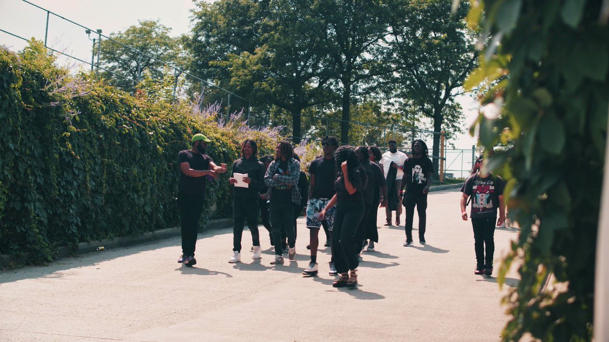 The statement is positive and informative, highlighting an educational opportunity for students and interns to learn about the music industry. It promotes a sense of community and learning, and the image supports this by showing a group of individuals, presumably the students and interns, in a setting that suggests engagement and interaction.