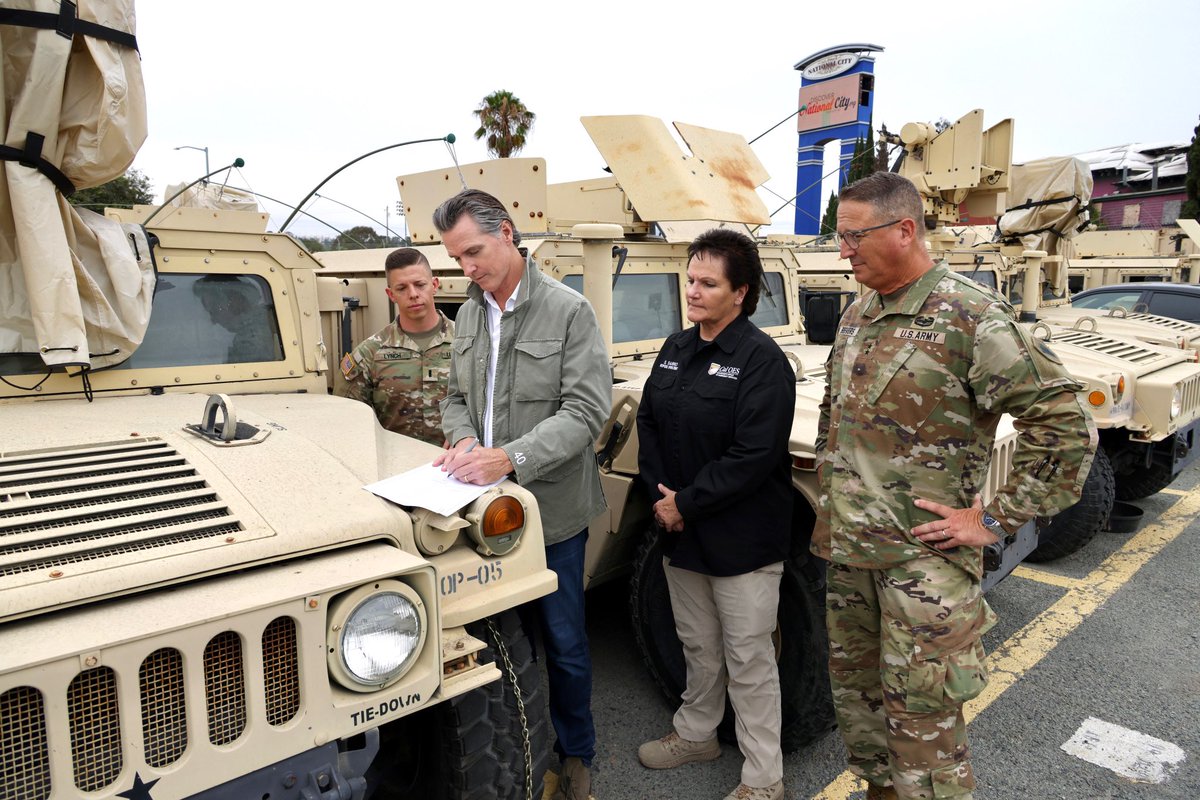The statement 'Stay safe, California' is a well-intentioned message of concern and caution directed towards the residents of California in anticipation of Hurricane Hilary. It is a response to the State of Emergency proclamation by Governor Gavin Newsom, which is a measure taken to facilitate faster recovery and response efforts. The image accompanying the conversation shows individuals, presumably officials, in a setting that suggests preparation or response to an emergency situation, which aligns with the context of the statement.