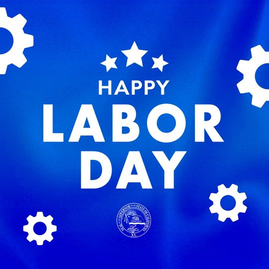 The statement is a positive message acknowledging Labor Day and expressing a commitment to improving job access, workplace safety, and opportunities for upward mobility. It is celebratory and supportive in nature, aiming to recognize the contributions of workers and the importance of their well-being. The accompanying image features a festive greeting for Labor Day with gear and star motifs, which are often associated with work and the American flag, respectively, reinforcing the message of the holiday.