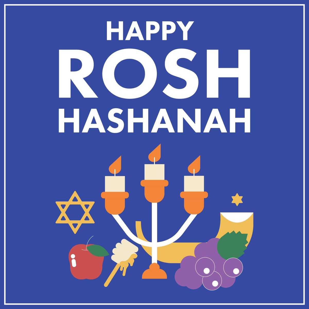 The statement is a positive and respectful greeting extended to those celebrating Rosh Hashanah, the Jewish New Year. It includes a traditional Hebrew phrase, 'L’shana tovah u’metukah,' which means 'for a good and sweet year.' The tone is warm and inclusive, and the intent is to wish well to those observing the holiday. The accompanying image features symbols associated with Rosh Hashanah, such as a menorah, apples, honey, and grapes, which are culturally appropriate and add to the festive nature of the message.