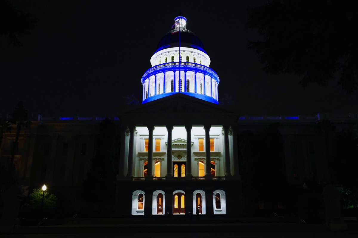 The statement 'California stands with Israel' accompanied by an image of a building lit up in blue and white, which are the colors of the Israeli flag, is a declaration of solidarity. The tone is supportive and the intent is to express alignment with the state of Israel. The content does not contain any harmful, disrespectful, or hateful language. It is a political statement that may be interpreted differently depending on individual perspectives on international relations and politics.