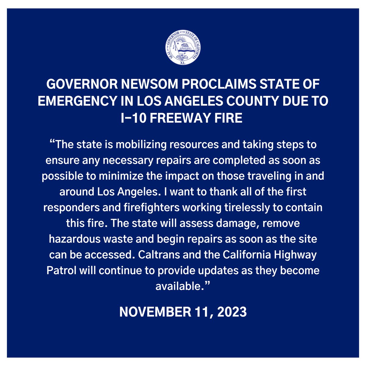 The statement is informative and addresses the actions being taken in response to an emergency situation. It acknowledges the efforts of first responders and communicates a commitment to public safety and infrastructure repair. The tone is professional and focused on providing reassurance to the public.