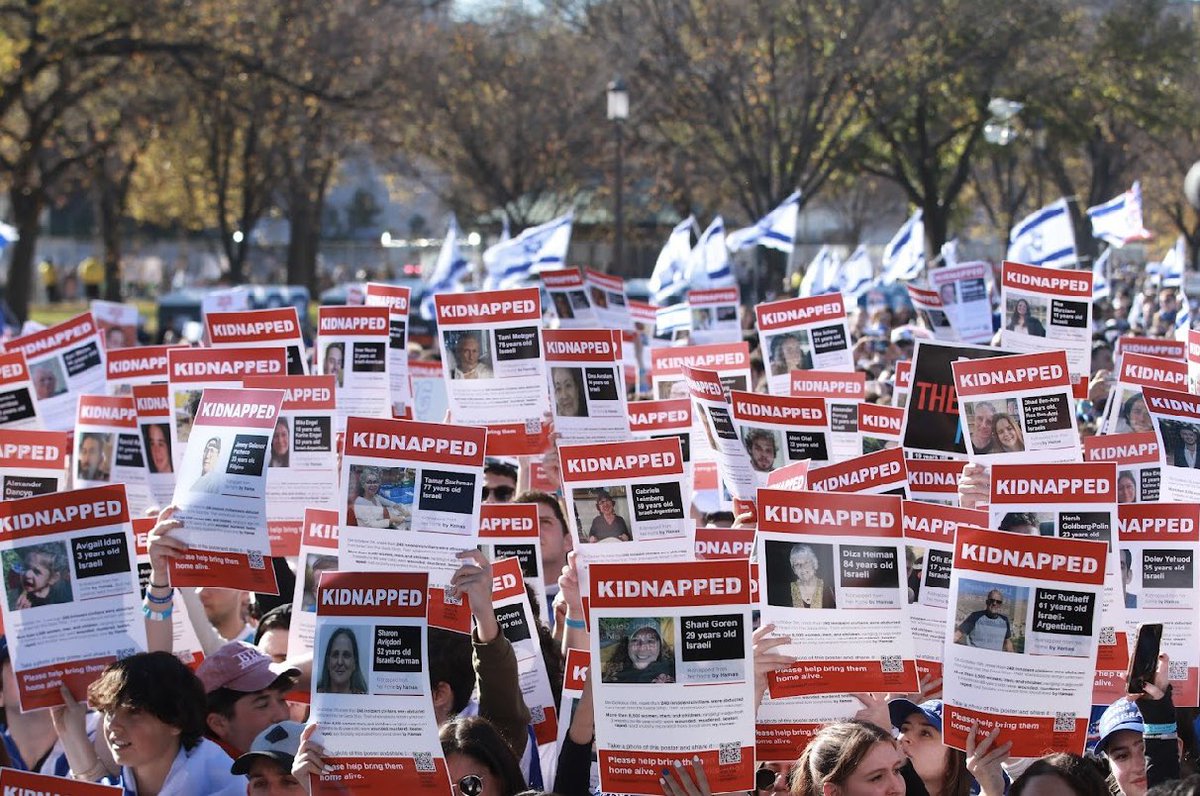 The statement expresses support for Israel and condemns Hamas, reflecting the speaker's political stance on the Middle East conflict. It also describes the impact of seeing a large crowd at a public event, which is intended to underscore the significance of the event and the cause.