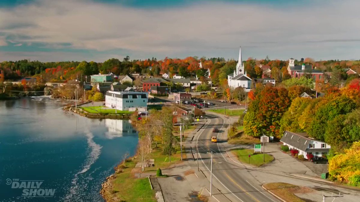 The statement appears to be a lighthearted and humorous suggestion that a particular individual, referred to by their Twitter handle, could be the key to enjoying the Thanksgiving holiday. The image provided is a scenic view of a town with autumn foliage, which does not contain any people or elements that would change the analysis of the statement. The statement seems to be a playful endorsement or promotion of a person's presence or involvement as a positive contribution to the holiday experience.