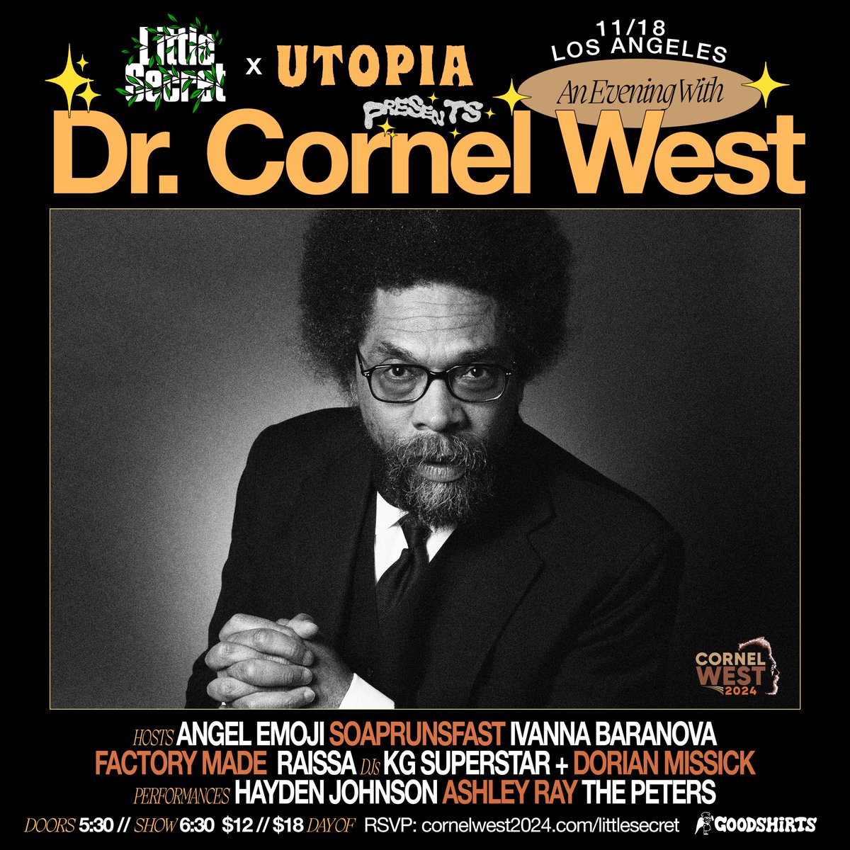 The statement is promotional, aiming to inform and attract potential attendees to an event featuring Dr. Cornel West. The tone is informative and the content includes essential details for those interested in attending. The hashtag and website title imply a political campaign, but the statement itself does not engage with policy discussions or societal issues.