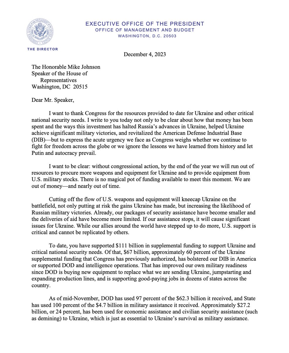 The statement is a critical assessment of the Biden Administration's handling of the situation in Ukraine, focusing on strategy, conflict resolution, and accountability for aid.