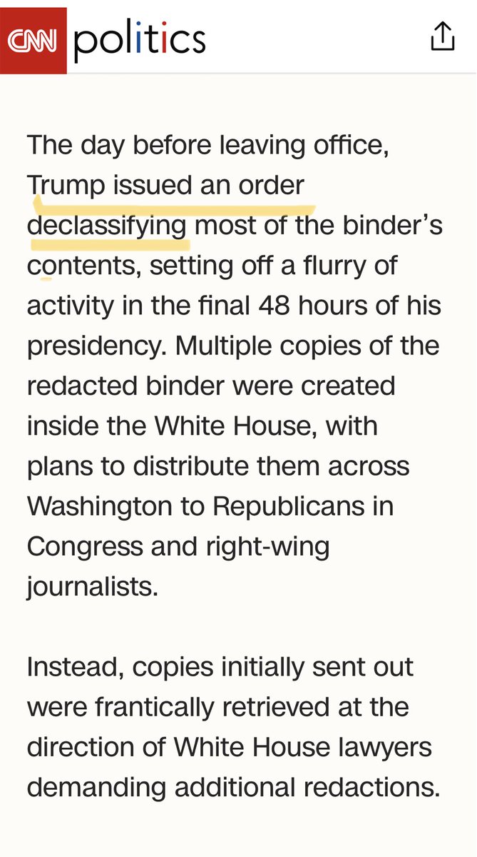 The statement in question is part of a political discussion regarding the powers of the executive branch, specifically presidential declassification authority. The tone is explanatory and aims to clarify the legal framework around presidential declassification, suggesting that it has limited potential for abuse. The statement does not appear to be harmful, disrespectful, or unempathetic. It engages in constructive criticism by addressing a concern about arbitrary power and provides a perspective on the legal boundaries of presidential authority. There is no indication of cyberbullying, harassment, or hate speech, and the statement seems to be made in good faith to contribute to the conversation.