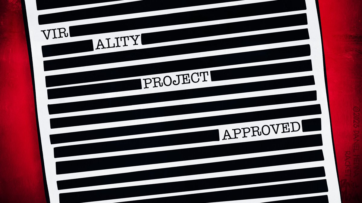 The statement in question appears to be a title for an audio version of an article that suggests an investigation into whether pharmaceutical companies were involved in planning a censorship program named 'Virality Project.' The image accompanying the statement shows a document with redacted text, implying secrecy or censorship, with the words 'VIRALITY PROJECT APPROVED' visible. The tone of the statement is investigative and implies potential wrongdoing or collusion. The content is likely to be controversial and could be seen as critical of pharmaceutical companies and censorship practices.