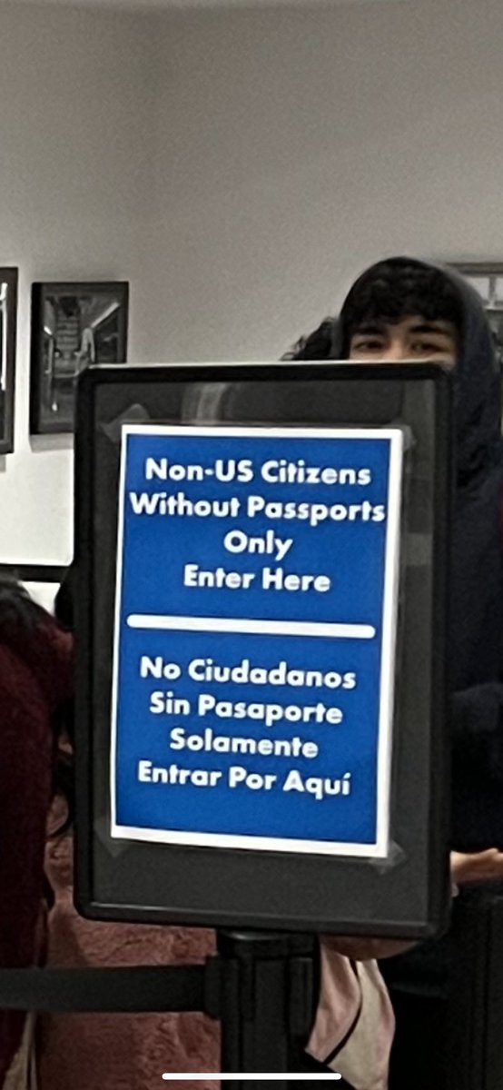 The statement provides an observation on immigration procedures at an airport, which is a matter of public policy and concern. It does not seem to cause harm, violate privacy, or discourage empathy. It may contribute to dialogue on immigration policy and is an exercise of free speech.