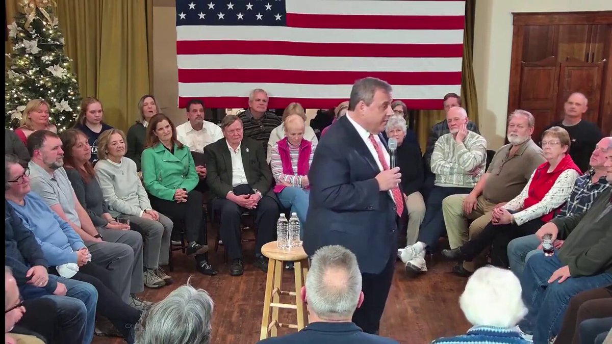 The statement '@realchasegeiser @GovChristie Thanks for following me ๐' is a lighthearted expression of gratitude and does not appear to have any harmful intent or content. It is conversational and does not touch on any of the principles of the oath for public discourse in a significant way. The image included shows a person, presumably @GovChristie, speaking to an audience with an American flag in the background. The image itself is neutral and does not add any particular context that would change the analysis of the statement.