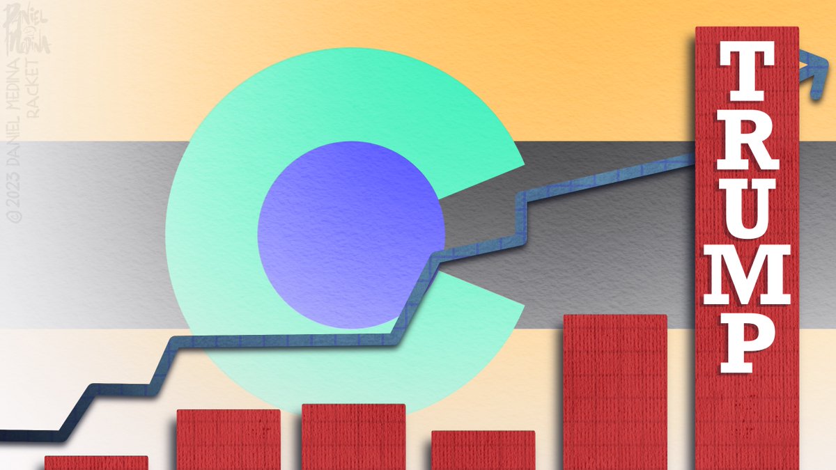 The statement 'Listen to This Article: Colorado Ruling Makes Trump a Frontrunner' is a directive to engage with content that discusses a political development. The image accompanying the statement appears to be a stylized representation of a graph with an upward trend alongside the name 'TRUMP', suggesting a positive outcome for Trump in the context of the Colorado ruling. The tone of the statement is neutral and informational, and the intent seems to be to inform the audience about a political event and its implications. The content itself does not inherently violate any principles of the oath but could be subject to interpretation based on the full context of the article.