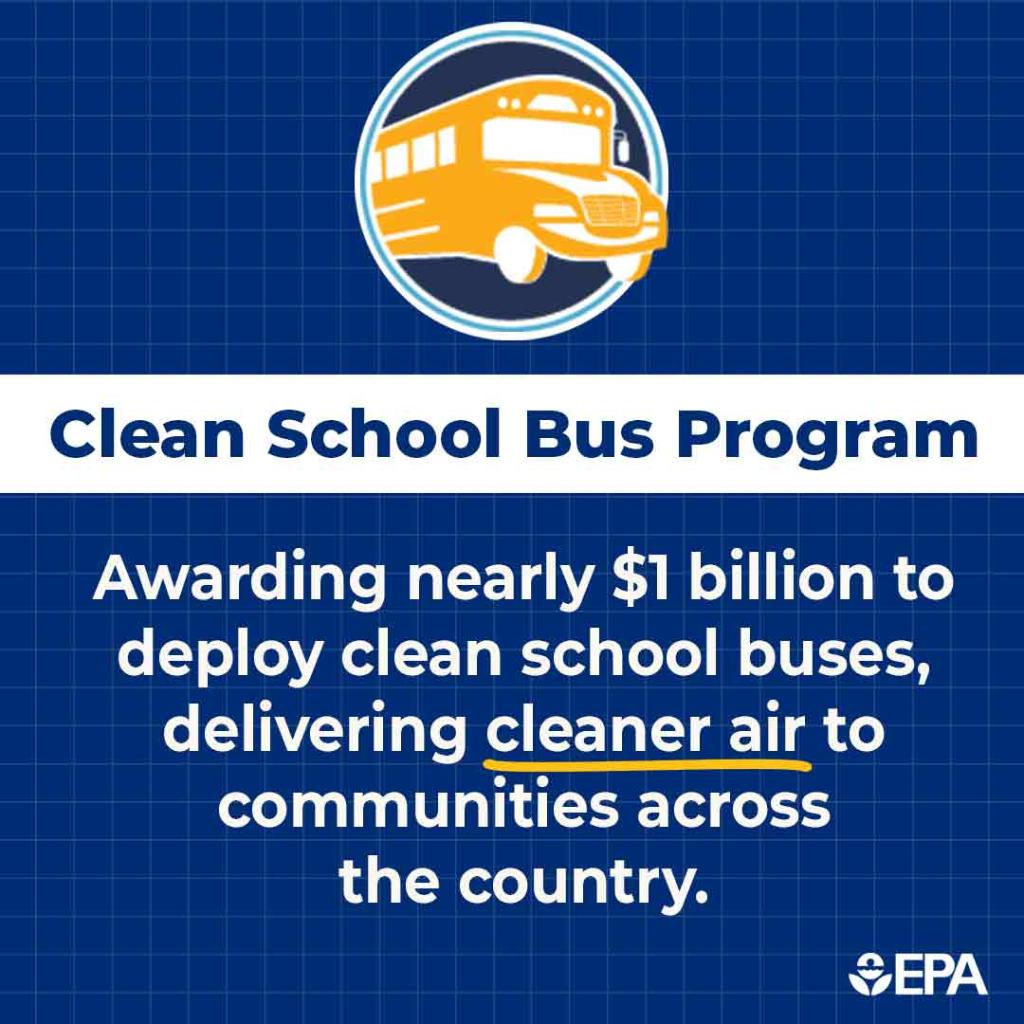 The statement is positive and informative, announcing government funding for cleaner transportation in schools, which addresses environmental policy and public health concerns.