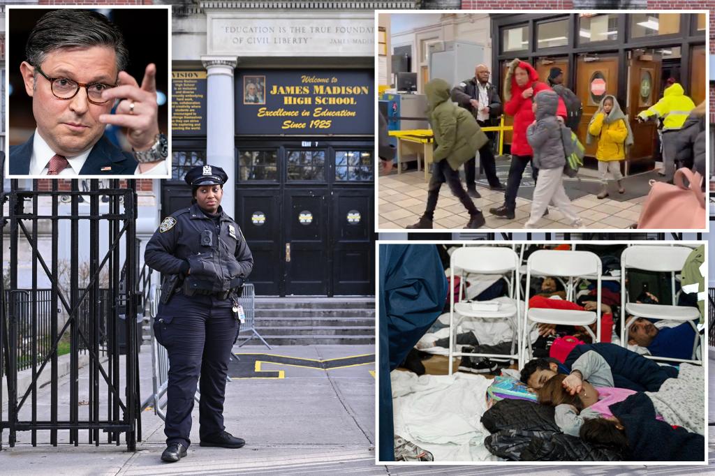 The statement is a part of public discourse as it involves a political figure addressing an issue related to immigration policy, public education, and local government response, which are matters of public concern. The tone appears critical, and the intent is to hold public officials accountable for their actions or inactions regarding the displacement of students due to migrants sheltering in a school gym.