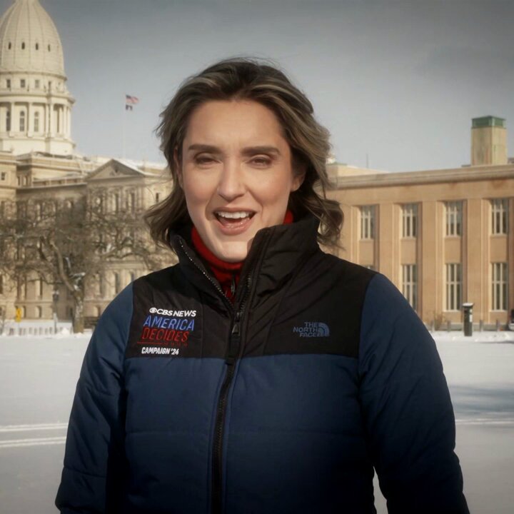 The statement is an announcement for an upcoming television segment featuring interviews with political figures. It is informational and neutral in tone, intended to inform viewers about the content of the next episode of a news program. The image shows a person, presumably a reporter or host, with a backdrop that suggests the location is related to the content of the show. There is no indication of harm, disrespect, or lack of compassion in the statement or the image.