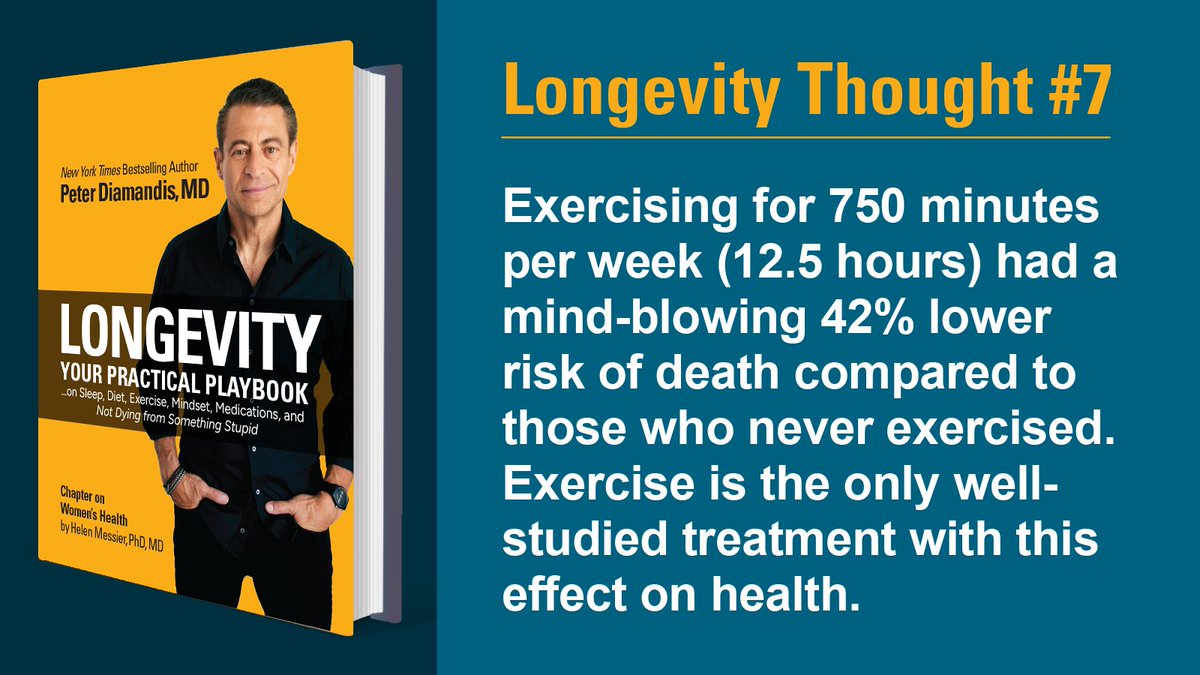 The statement is promotional in nature, offering a resource (a book) that expands on the topic of longevity practices. It is a response to a tweet about the health benefits of exercise, providing additional information and suggesting a way for interested individuals to learn more. The tone is informative and the intent is to promote the author's work while contributing to the conversation on health and longevity.