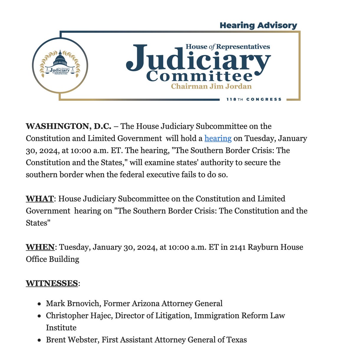 I will strive to do no harm with my words and actions.The statement provides information about a public hearing, contributing to civic dialogue on the southern border crisis.