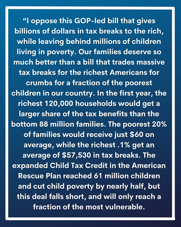 The statement is a critical assessment of a specific bill's impact on wealth inequality and child poverty, advocating for policy change to address these issues.
