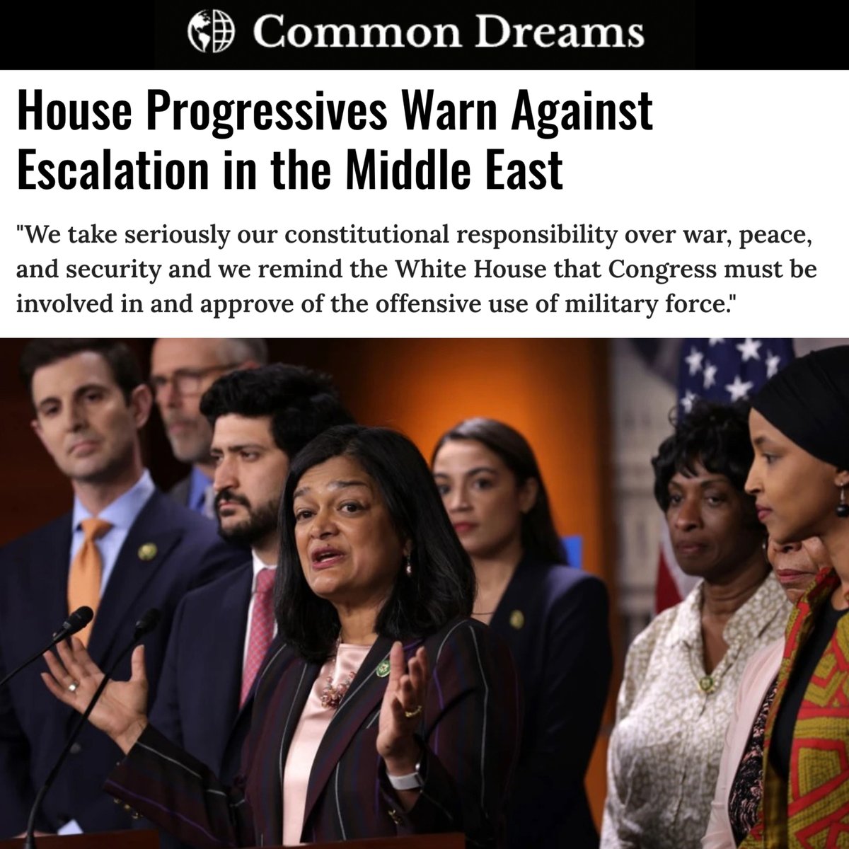 The statement calls for de-escalation and adherence to constitutional processes regarding military action, which is a matter of public concern and policy.