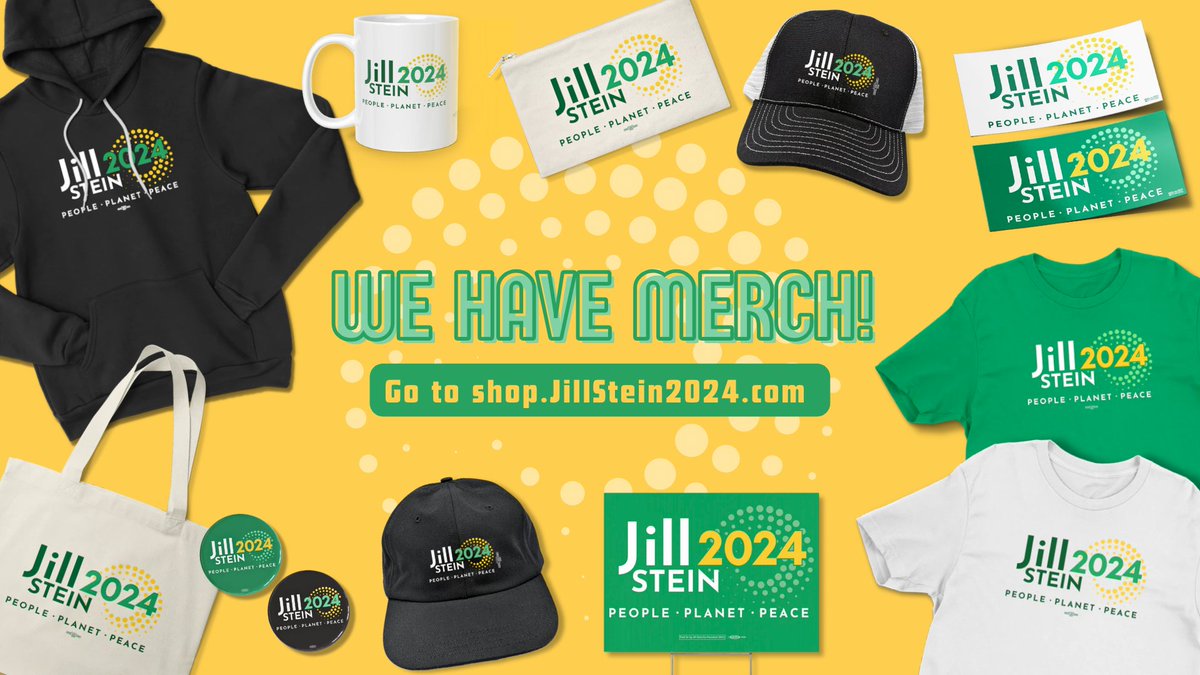 The statement is promotional in nature, advertising merchandise for a political campaign. It emphasizes that the products are made in the USA and printed with unionized labor, which may appeal to certain values such as domestic production and workers' rights. The tone is positive and encouraging, aiming to generate support and sales for the campaign. The image displays a variety of merchandise with the campaign's branding.