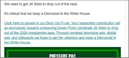 The statement is political in nature, expressing a response to an adversarial action by a Super PAC. It frames the situation as an attack on the campaign and positions the campaign as a representative of the people, in contrast to the interests of Super PACs. The call to action at the end seeks support to counteract the perceived attack. The image provided shows a message from a Super PAC with an intent to pressure a candidate to drop out of a race, which is a strategic political move but can be seen as an attempt to manipulate the political process.
