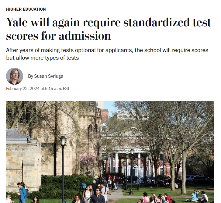 The statement 'well that was a quick u-turn' is a brief and informal reaction to a news headline regarding Yale's decision to again require standardized test scores for admission. The tone is conversational and slightly critical, suggesting surprise at the rapid change in policy. The content does not appear to harm, disrespect, or promote negativity towards any individual or group.