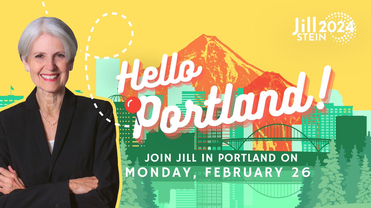 The statement is an invitation to a political event featuring a speaker in Portland. It is promotional in nature, aiming to inform and gather supporters for a campaign event. The tone is positive and welcoming, and the content is focused on the logistics of the event and the campaign's key messages. The image is a graphic promoting the event with a friendly greeting and details about the date and location.