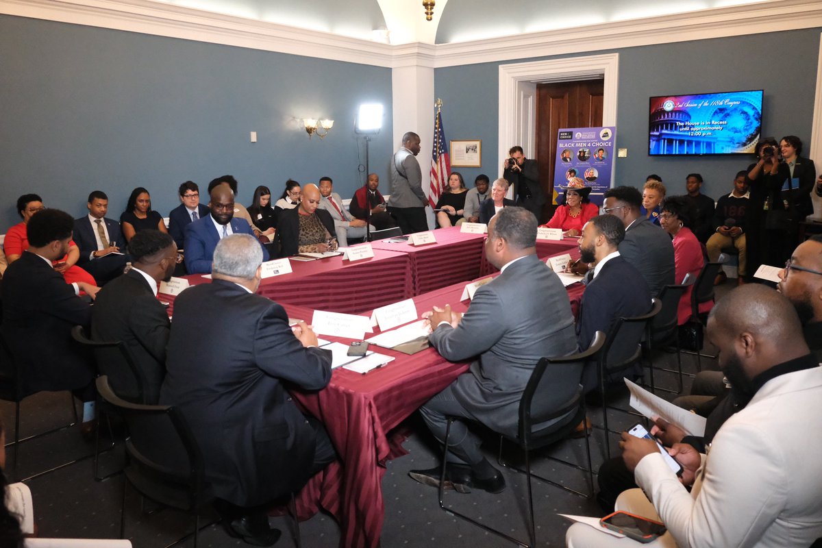 The statement is an informative announcement about a partnership and roundtable discussion on Capitol Hill addressing reproductive freedom and the involvement of Black men in this public issue.