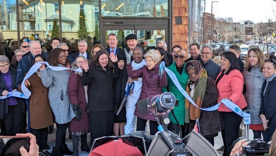 The statement is positive and celebratory, announcing the opening of a new affordable housing redevelopment project. It emphasizes the importance of addressing the housing crisis and caring for the elderly and disabled with dignity.