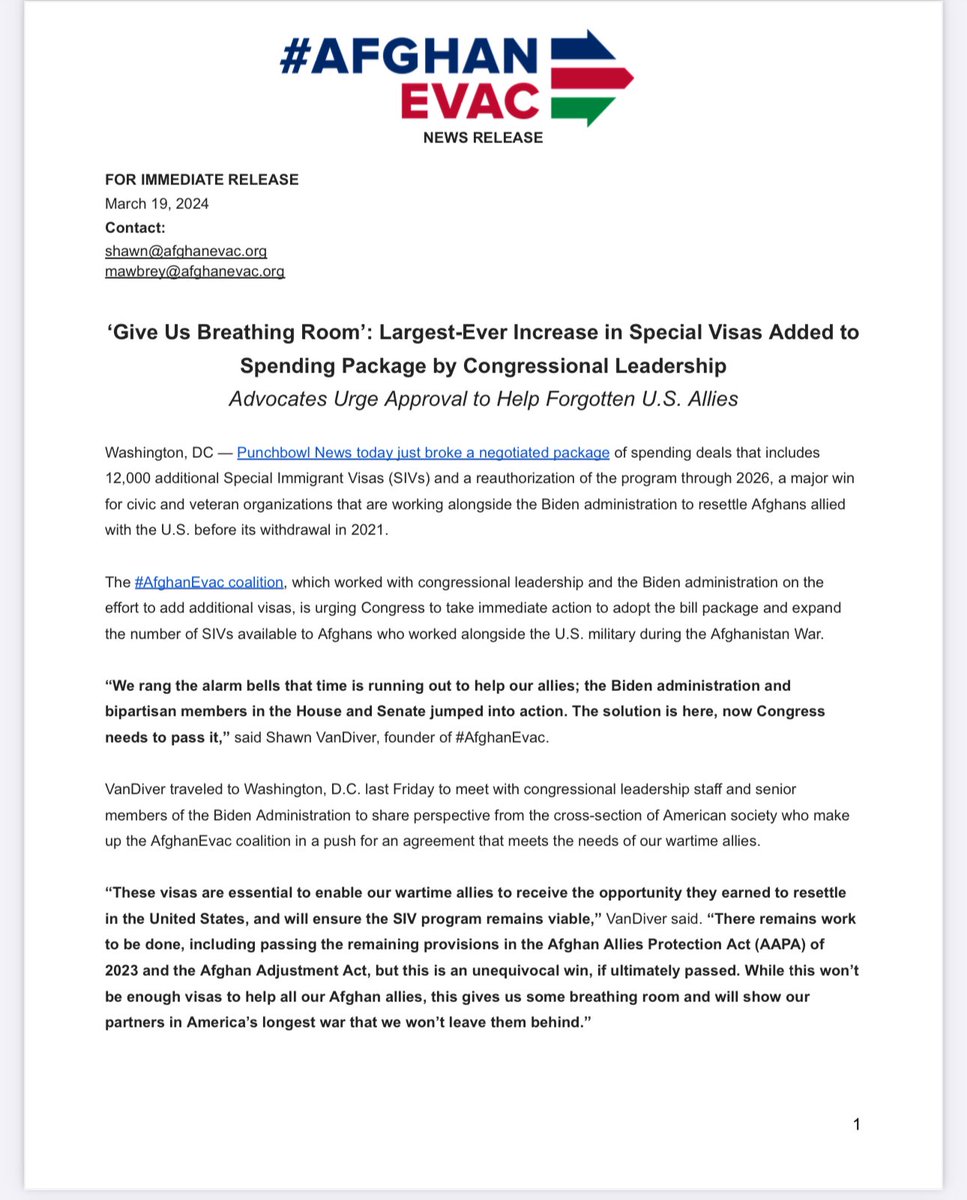 The statement is a positive and supportive comment on the policy change regarding SIVs for Afghan allies, advocating for their rights and emphasizing the importance of not leaving them behind.