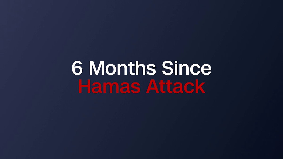 The statement is a promotional announcement for a television news program, listing the guests and providing information on how to watch the show. The image indicates a topic that may be discussed on the program, marking '6 Months Since Hamas Attack.'