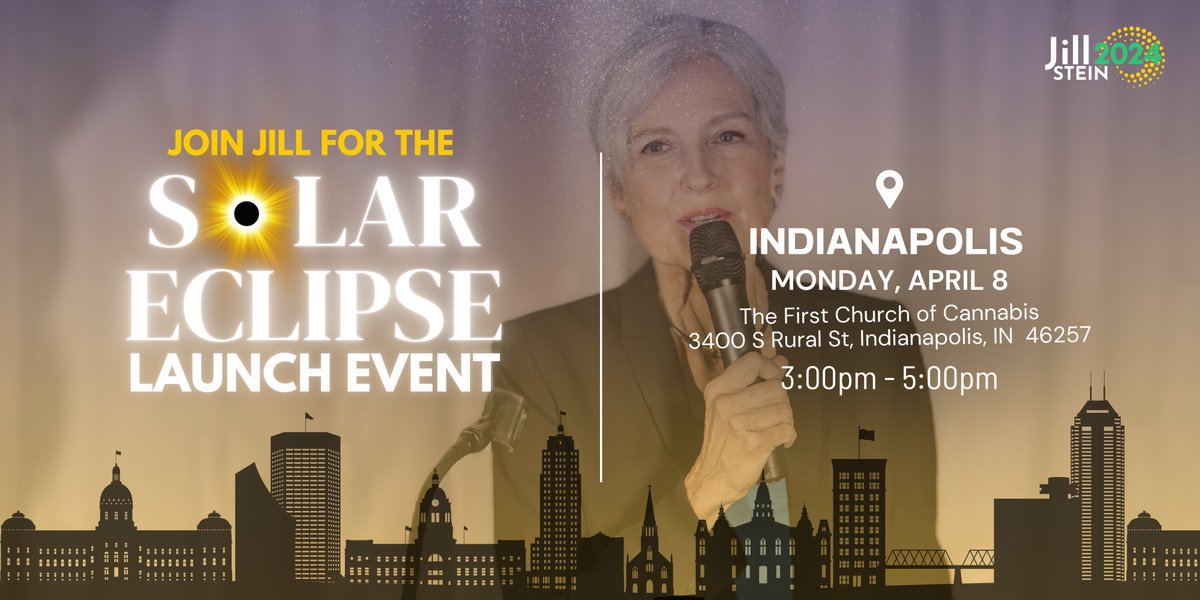 The statement is an invitation to a solar eclipse viewing event with a political undertone, suggesting a moment for transformational political change. The tone is inviting and promotional, with the intent to gather supporters for a shared experience and possibly to discuss political ideas informally.