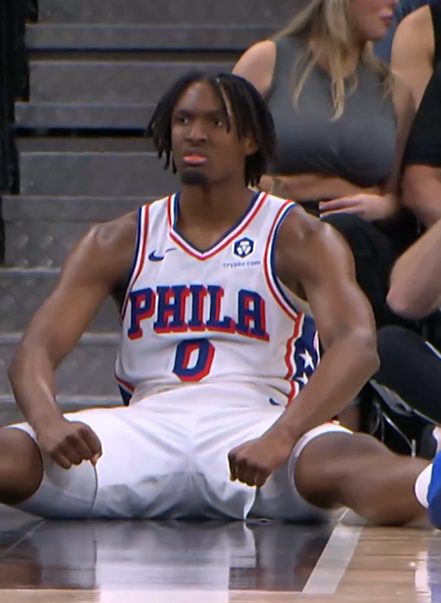 The statement 'SIXERS WIN' is a celebratory remark likely made in the context of a sports event, specifically a basketball game involving the Philadelphia 76ers, commonly referred to as the 'Sixers.' The image accompanying the statement shows a player in a Sixers uniform, which suggests that the statement is related to the outcome of a basketball game. The tone is enthusiastic and the intent is to share the joy of victory with others. The content is straightforward and does not engage in any substantive discussion of public issues or policies. Therefore, it does not constitute public discourse.