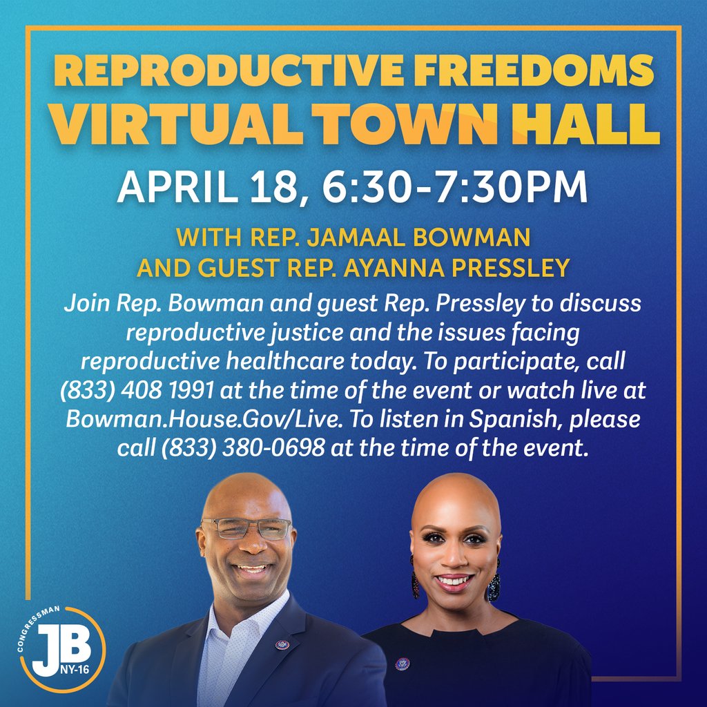 The statement is an invitation to a virtual town hall on reproductive freedoms, which is a public issue. It promotes an event discussing public policy and societal issues.