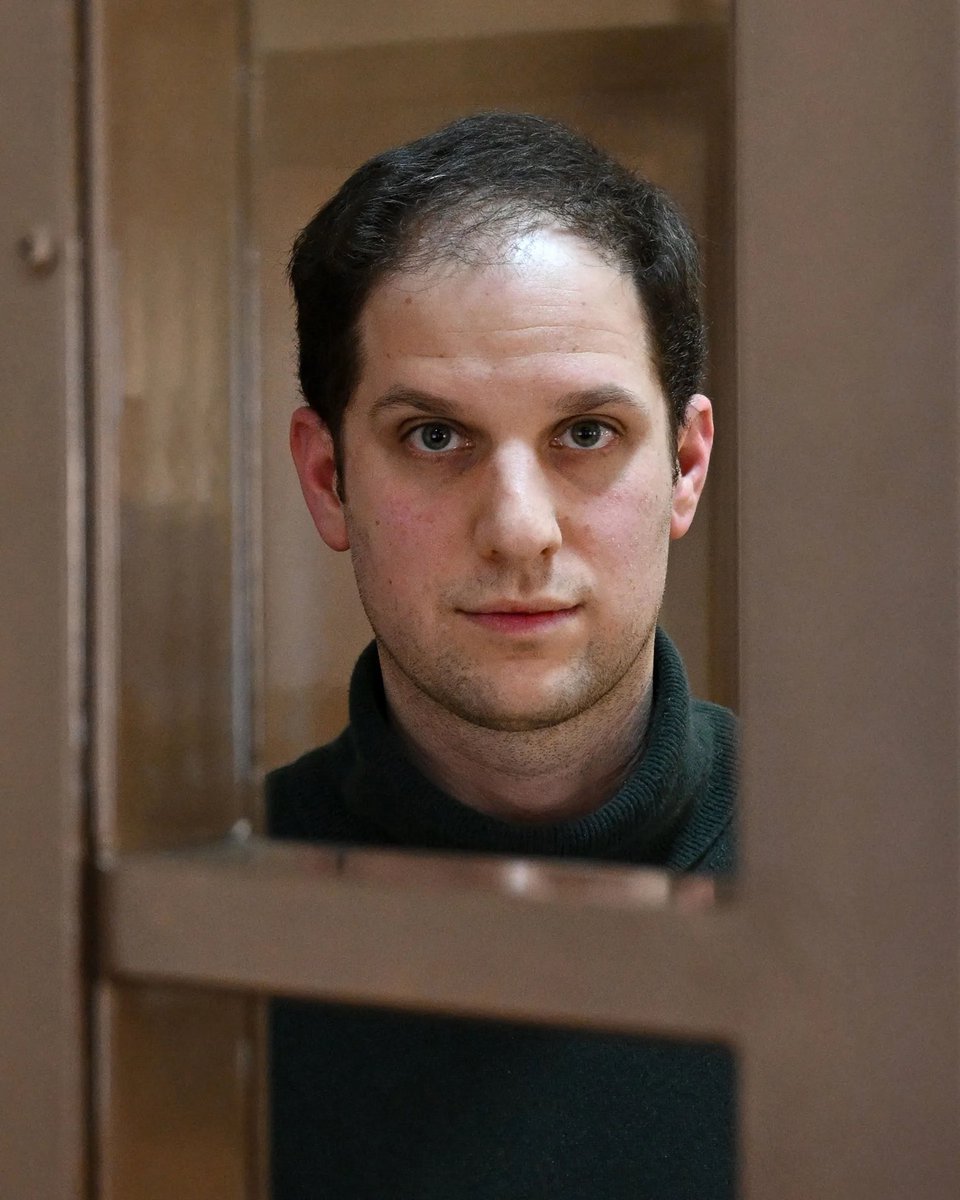The statement is a call to action and a condemnation of the arbitrary arrest of an American by Russia, which is a matter of public concern and international relations. It references a specific date of arrest and mentions a new Senate bill, providing a link to the official congressional record. The hashtag #IStandWithEvan is used to show solidarity and support for the individual's release. The image appears to show the individual in question, likely in a setting that suggests detention or confinement.