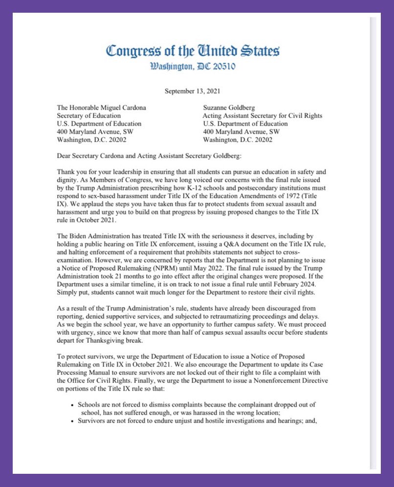 The statement by @RepPressley addresses the issue of Title IX regulations under the Trump Administration, criticizing them for making campuses more dangerous and exacerbating the trauma of survivors. It praises the actions of @SecCardona for considering changes to strengthen survivors' rights, including those of LGBTQ+ students. This statement is a part of public discourse as it engages in a substantive discussion on public policy related to education and civil rights.