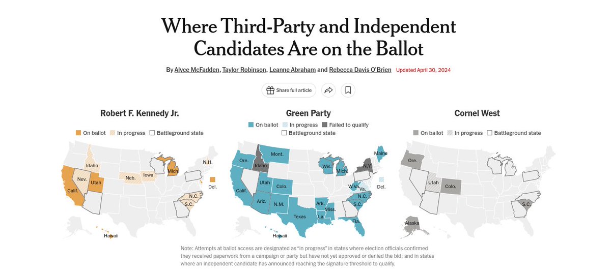 The statement is a public discourse as it engages in a substantive discussion about the accuracy of media reporting and the electoral process, specifically regarding ballot access for a political candidate. It criticizes a major news outlet for allegedly incorrect reporting and uses this claim to mobilize support and funding for the candidate's campaign.