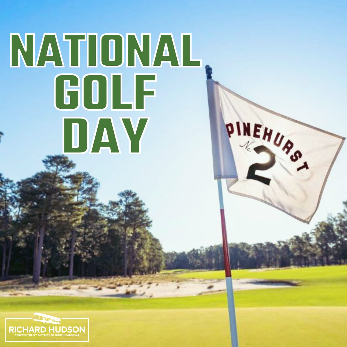 The statement celebrates National Golf Day and highlights the speaker's enthusiasm for golf, particularly at a notable golf course. It also mentions an upcoming major golf event, the U.S. Open, fostering excitement and attention towards the sport and the event.
