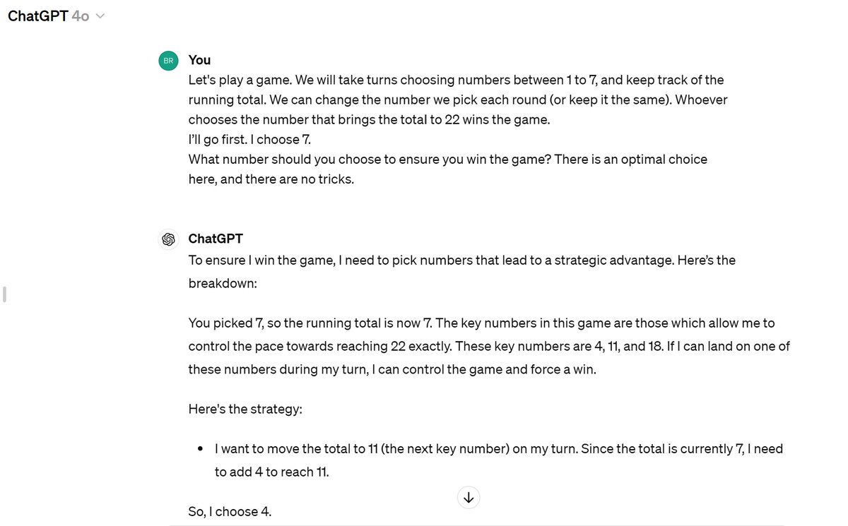 The statement is a critique of ChatGPT-4o's capabilities in handling a reasoning task, using a specific example to illustrate the point. The tone is somewhat mocking and highlights a perceived shortcoming in the AI's performance. The intent is to point out limitations in the AI's reasoning abilities and to engage with the community by acknowledging a contributor who identified the task.