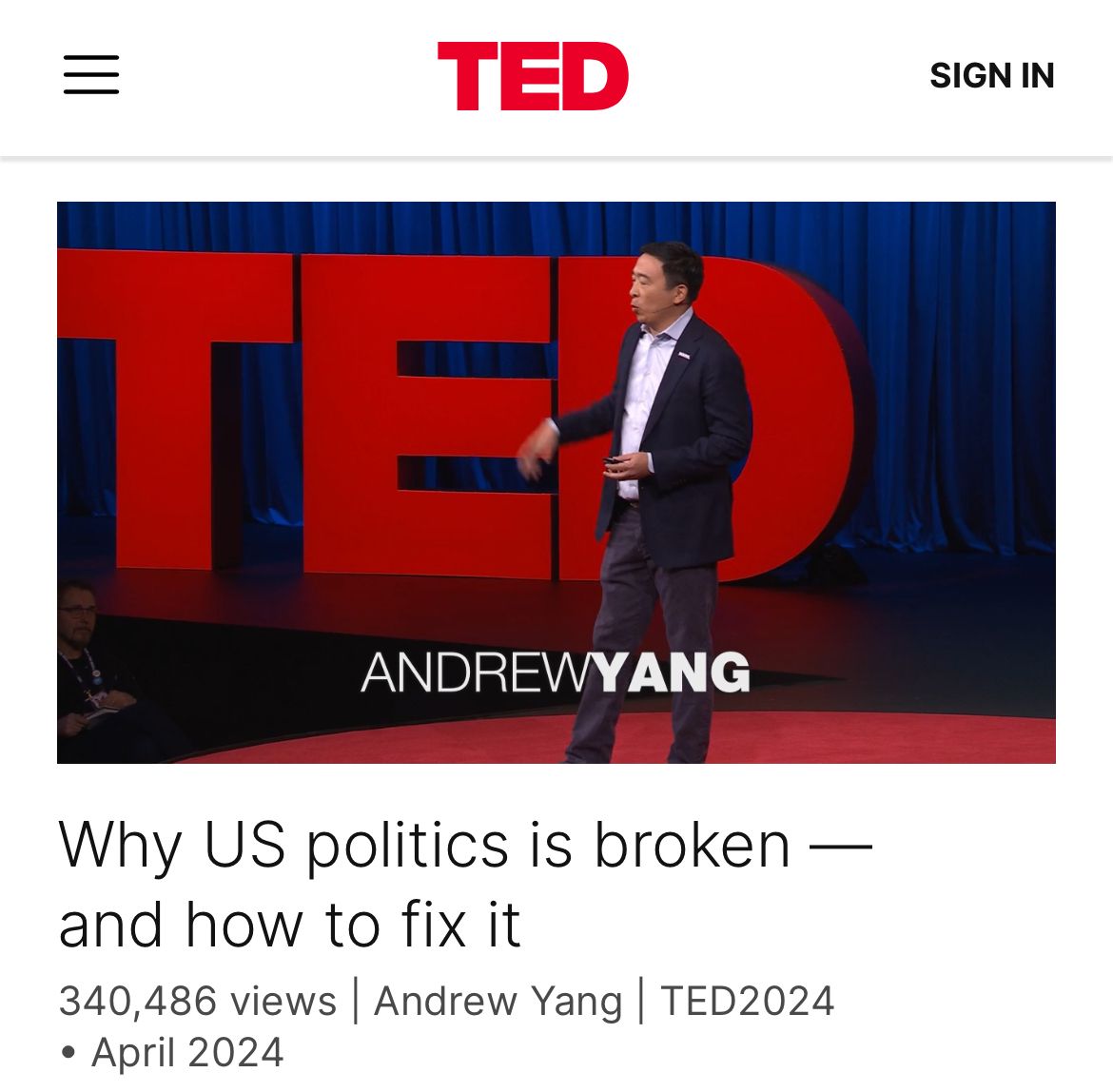 The statement and linked content engage in public discourse by addressing the issue of political system reform in the United States. The statement highlights a perceived discrepancy between Congressional approval ratings and re-election rates, suggesting systemic flaws. The linked TED Talk by Andrew Yang proposes specific reforms, such as ranked-choice voting, to address these issues.