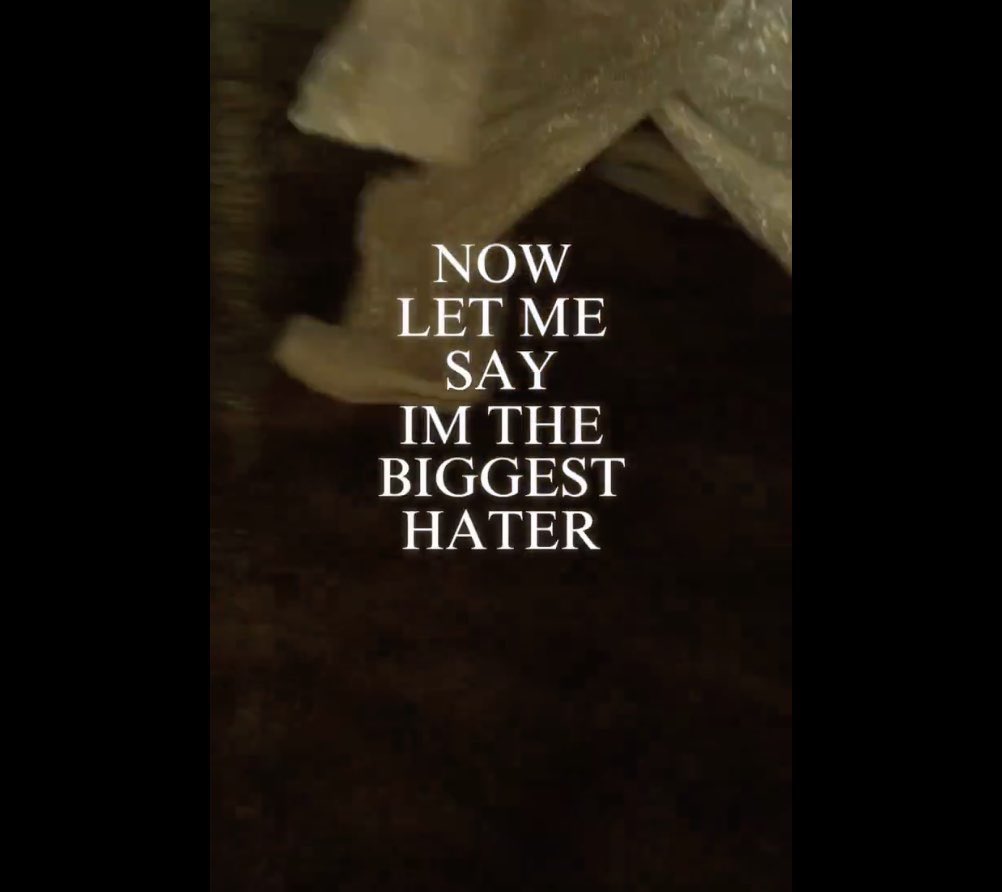 The statement 'Now let me say I'm the biggest hater' appears to be a self-declaration of animosity or opposition, possibly in a sarcastic or rhetorical context given the preceding political discourse. It seems to be a response to a chain of political statements involving criticisms and accusations between public figures.