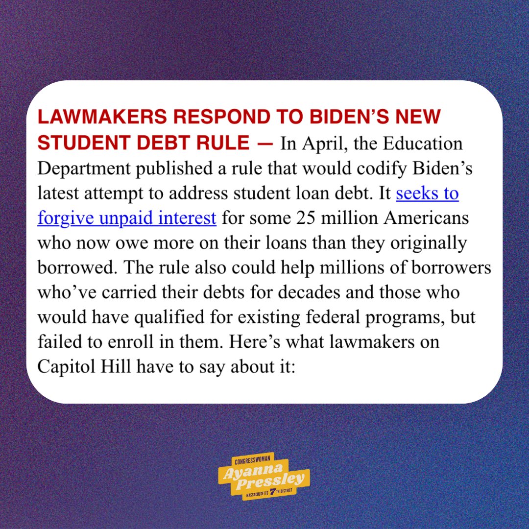 The statement and accompanying images constitute public discourse as they address a significant public policy issue: student debt relief. The statement advocates for the Biden Administration's efforts to cancel student debt and calls for swift action to provide relief to borrowers. It also highlights the support of several lawmakers and criticizes the Supreme Court's decision to strike down a previous debt relief plan.