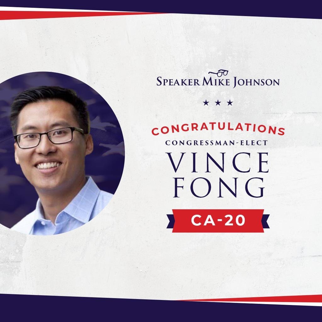 The statement is a congratulatory message from Speaker Mike Johnson to Congressman-Elect Vince Fong, expressing a positive sentiment and a willingness to collaborate in Congress. The tone is supportive and encouraging, aimed at fostering a cooperative working relationship.