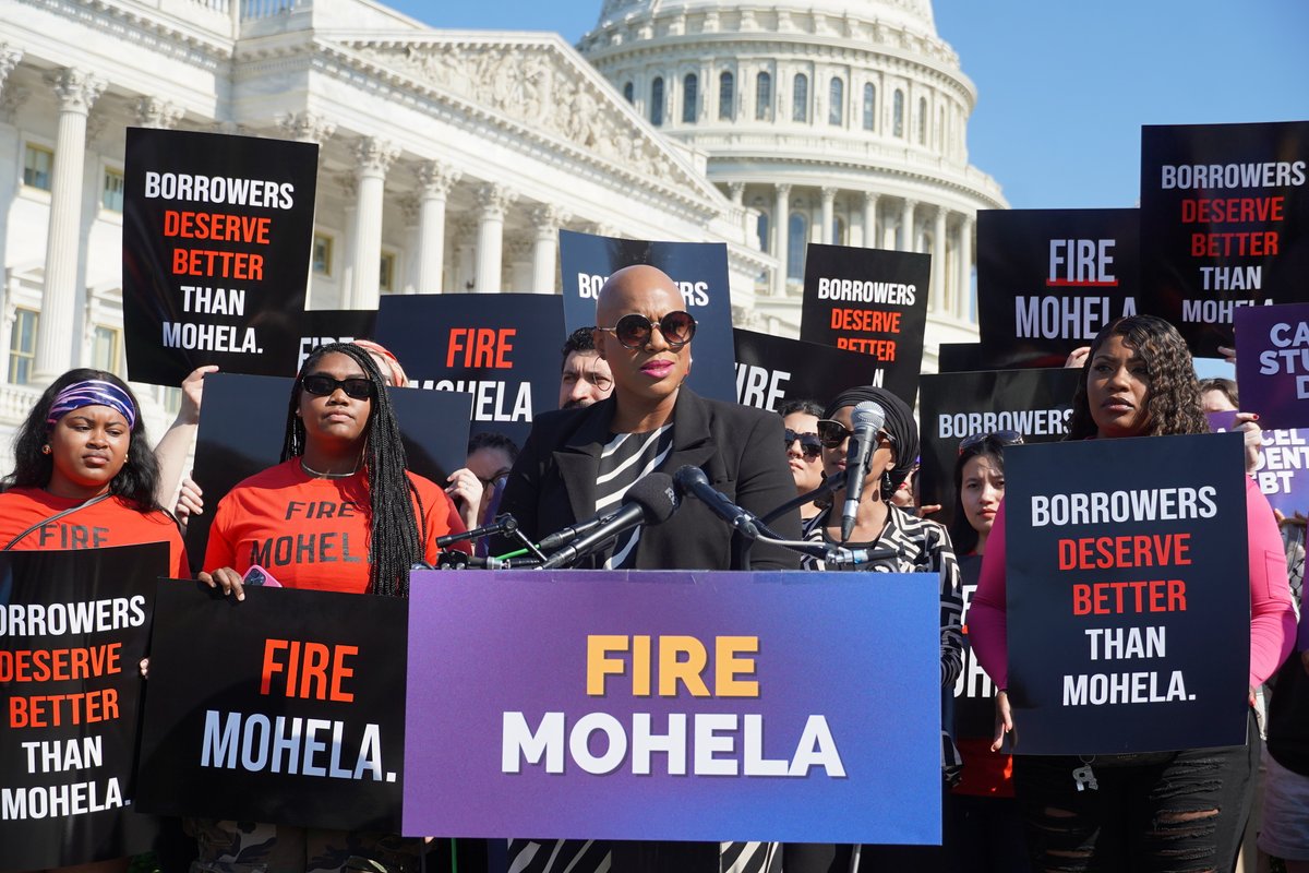 The statement and accompanying images constitute public discourse as they address the issue of student debt and criticize the actions of MOHELA, a loan servicer, while calling for action from the Biden Administration. The tone is assertive and critical, aiming to advocate for borrowers' rights and policy change.